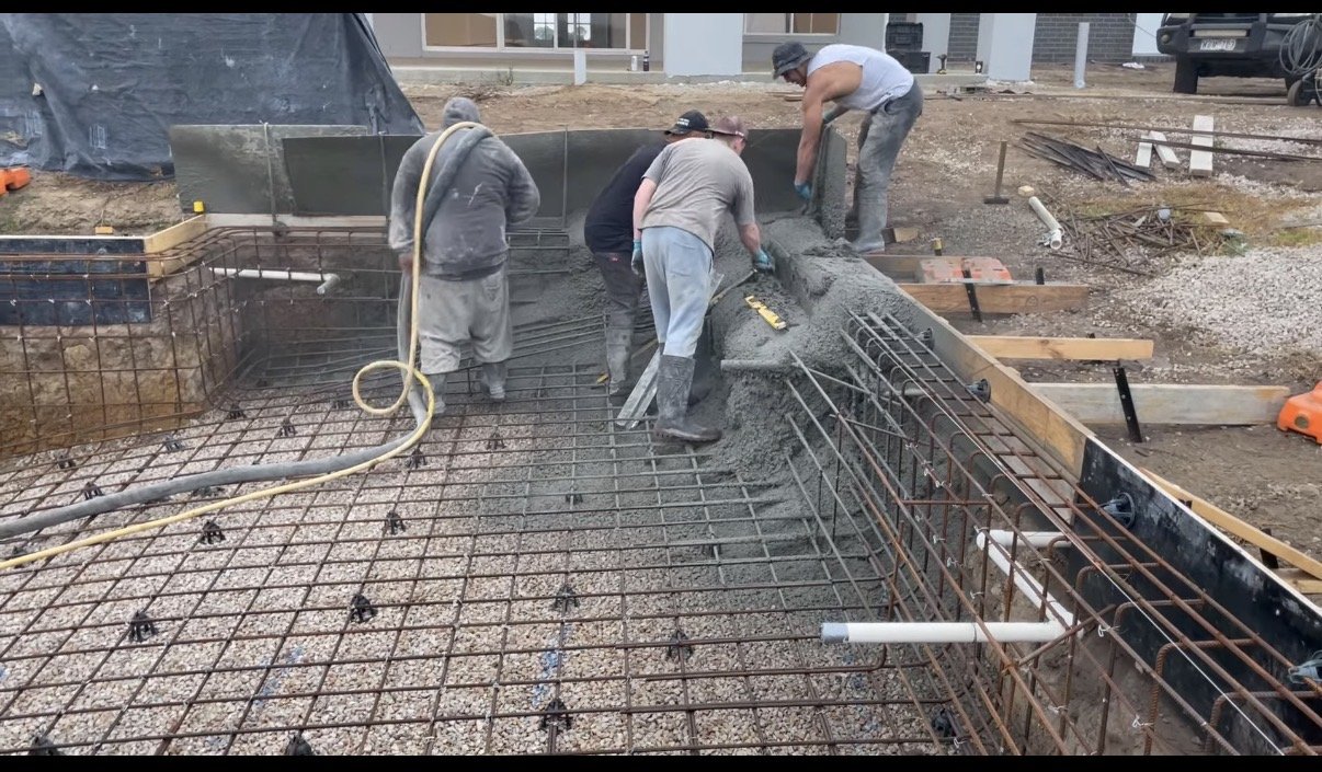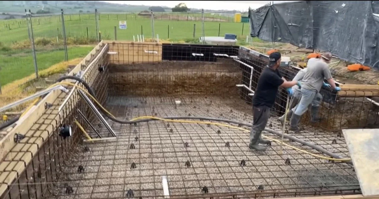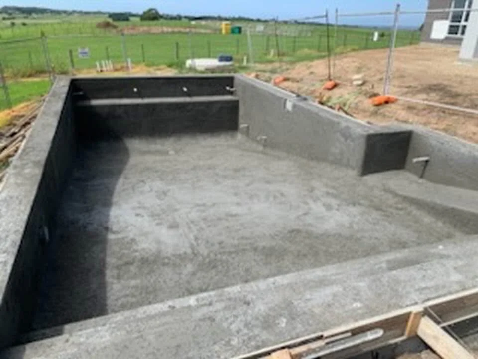 This custom concrete pool designed to complement its open rural setting, combining clean lines with practical, family-friendly features. Surrounded by timber decking and finshed with light stone coping, the pool integrates seamlessly with the home’s outdoor living area. The simple rectangular design offers generous swimming space, while the neautral palette ensures a timeless, low-maintenance finish.